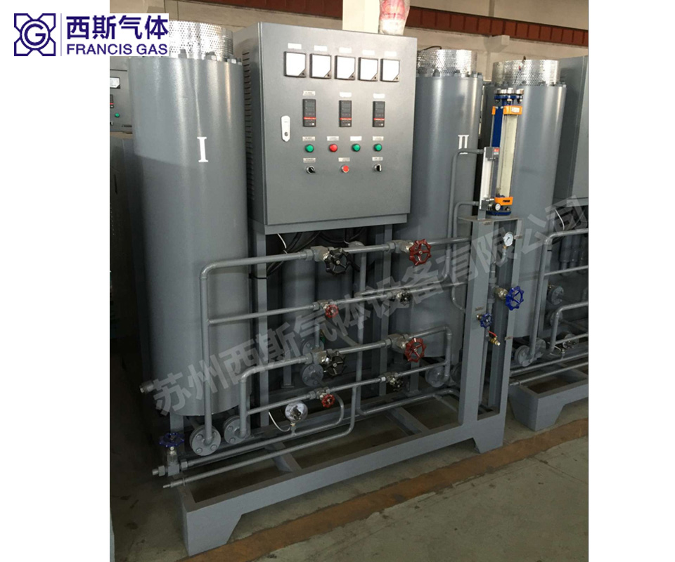 純化器:主要有除氧器(對氣氛含氧量有特殊要求的客戶選用)、冷卻器、分子篩吸附干燥器和閥門組、電氣控制等組成。